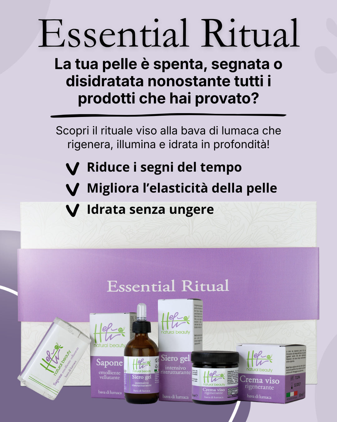 "Il tuo rituale di bellezza inizia qui, scopri la forza della natura e vivila ogni giorno prendendoti cura della tua pelle."